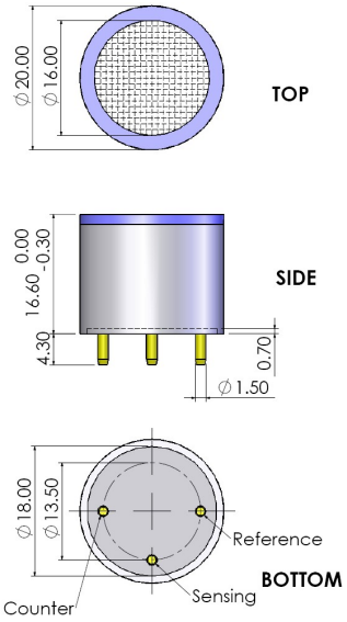 Description: Nitric Oxide Sensor 250ppm 4 series electrochemical