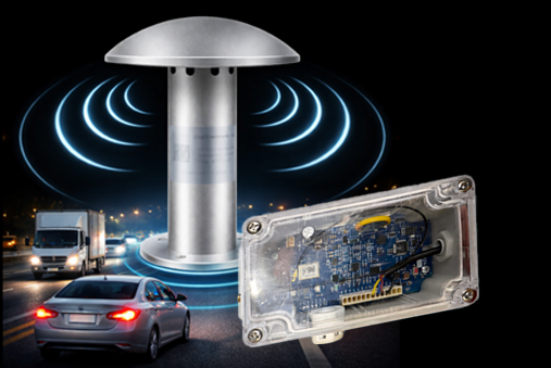 Urban sound pressure level sensing unit for real-time traffic flow estimation, interfaced via Modbus to a NeoMesh gateway.